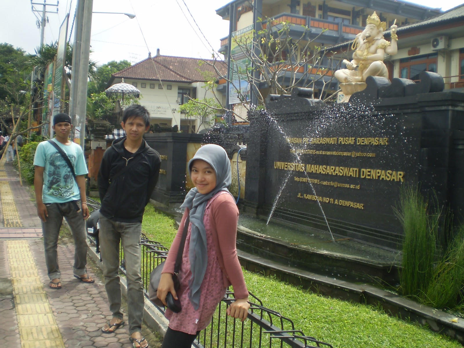 Perjalanan Makassar – Bali hanya ditempuh dengan 1 jam via Lion Air. Alhamdulillah kami tiba di Bali pukul 18.00, tidak ada perbedaan waktu antara Makassar dan Bali. Sebelum meninggalkan bandara tak lupa kami mengabadikan dengan camdig. Orang yang ingin menjemput ternyata masih dalam perjalanan, alhasil kami menunggu di luar bandara sekitar 1 jam. Alhamdulillah, akhirnya datang juga dengan 3 motor. Tanpa basa basi kami berkenalan, dan mengantar kami ke Markas KSR IHDN Bali. Disinilah kami akan tinggal selama 2 hari sebelum bertolak ke Mataram.