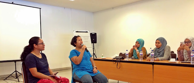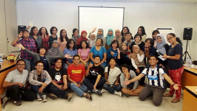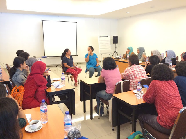 Seorang wanita mengenakan baju terusan warna biru dipadukan dengan celana jeans, tas selempang di sampingnya serta kacamata hitam di atas kepalanya. Dengan mudahnya dia membuka pintu dan memasuki ruangan kami, kemudian dia melambaikan tangan menyapa kami yang sedang asyik dalam diskusi kelompok, membahas tentang blog dan tulisan kami masing-masing yang dipandu oleh Kak Mumun.