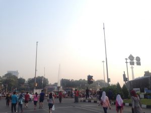 Memulai petualangan di acara car free day, menikmati sejuknya udara pagi kota jakarta tanpa polusi kendaraan, maka datanglah ke kawasan Monas hingga Senayan. Sepanjang jalan Tamrin – Sudirman ditutup setiap hari minggu, mulai pagi hari hingga pukul 11 siang. Kapan lagi bisa merasakan Jakarta dengan kebebasan seperti ini, ada banyak yang bisa kamu lakukan mulai dari berolahraga, menonton beberapa pertunjukan yang ditampilkan oleh beberapa komunitas. Selain itu, di kawasan Monas terdapat beberapa penjual kaki lima yang menjajakan aneka kuliner dan cindera mata. Sempatkanlah juga naik ke atas puncak Monas, dengan membayar 3500 kamu sudah bisa menikmati 360 derajat kota jakarta dari ketinggian