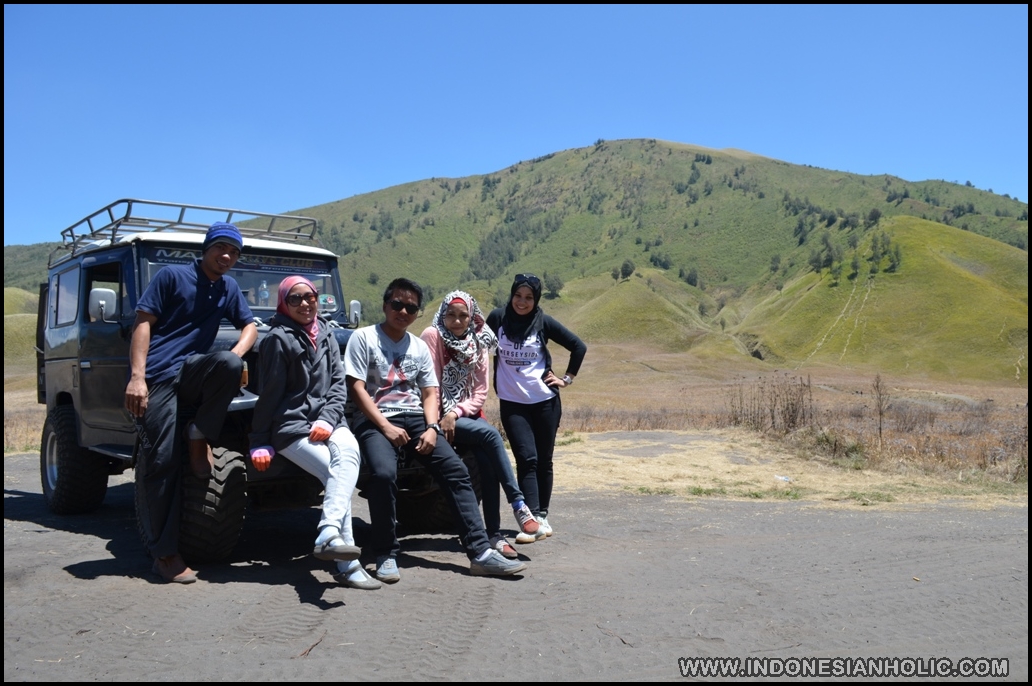 Pemandangan yang indah sangat sayang dilewatkan untuk mengabadikan moment. Perjalanan memang bisa kita rasakan sekarang tapi tak ada yang bisa dikenang kecuali gambar. foto yang akan bercerita bahwa kita pernah berada ditempat ini walaupun tanpa kita ceritakan. Beberapa spot terekam di kamera, kami juga foto bersama di depan jeep. Disini saya harus rela menjadi relawan untuk menjadi photographer dan memotret aktifitas mereka. Keceriaan dan kebersamaan terlihat ditempat ini dimana sebelumnya terlihat dari kami masih sedikit ada ruang batas. Perjalanan liburan yang menyenangkan bersama kalian dan mendapatkan teman baru itu yang kami rasakan bersama. Ada beberapa moment sempat saya rekam canda tawa mereka. Saya sibuk mengatur pose mereka seakan saya seperti photographer handal tapi kenyataannya masih amatiran. Mungkin beberapa gambar ini sedikit bercerita.