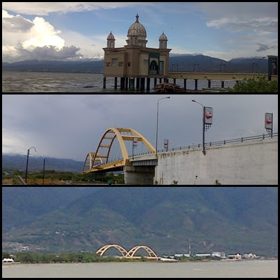 Setelah menikmati Kaledo, lanjut perjalanan menuju kawasan pantai Talise, Sepanjang pantai terdapat beberapa cafe namun ramai di saat malam hari. Sepanjang perjalanan kami melewati jembatan kuning kembar yang merupakan ikon kota Palu. Ini adalah bangunan kebanggaan dan sangat indah disaat malam hari karena setiap sisi jembatan terdapat beberapa lampu. Disini juga terdapat mesjid Terapung, uniknya ini dibangun diatas air laut.