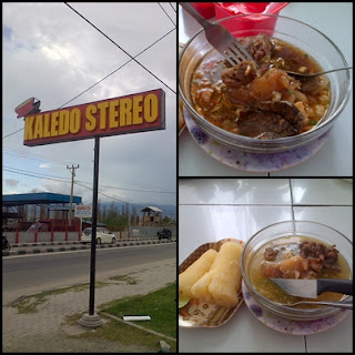 Liburan saya di Palu akan stay di rumah keluarga. Setelah tiba di rumah kelurga, istirahat sebentar kemudian kakak saya mengajak untuk City tour Palu sambil wisata kuliner. Tujuan pertama adalah makan Binte’ di daerah pasar inpres Palu. Binte’ seperti soup namun isinya jagung rebus. Kemudian lanjut menuju kawasan Pantai Talise, sebelum menyusuri pantai kami menuju warung Kaledo. Kaledo adalah makanan khas kota palu, jika ke palu tidak mencicipi Kaledo maka itu sama saja kamu tidak ke kota ini. Nama warungnya “Kaledo Stereo”. Pilihan kaledo dapat kita pilih mau campur ubi rebus atau nasi. Saya Pesan 1 porsi kaledo + ubi rebus minumnya teh botol sosro. Dinding warung terdapat beberapa bingkai yang gambarnya artis yang pernah makan disini, terlintas di pikiran saya kalau ini adalah warung Kaledo pavorit di kota ini.
