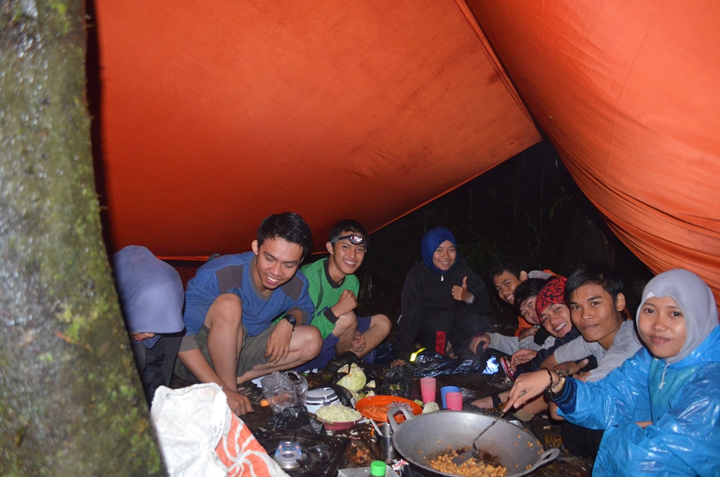 Kami semua makan dengan lahap, entah karena masakannya yang enak atau memang lagi lapar-laparnya. Entahlah, di alam kita selalu diajarkan untuk selalu bersyukur atas segala nikmat walaupun dengan menu seadanya namun jika di gunung itu terasa luar biasa.