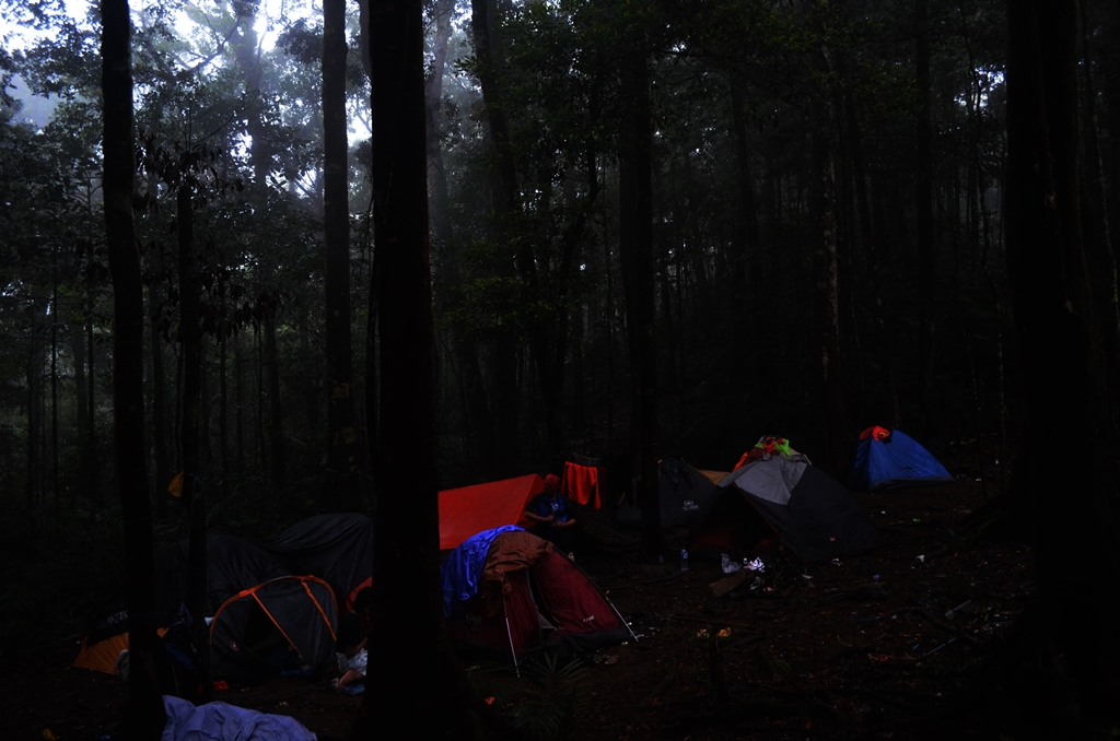 Cahaya matahari sudah tak terlihat lagi dari sela-sela pepohonan, kini sore telah berganti menjadi malam. Saya memilih tenda paling ujung bersama kak fandy dan kak sapot, sembari yang lain menuju tenda masing-masing. Perempuan yang ikut sibuk mengurusi perlengkapan dapur sedangkan yang lain menuju sumber air tak jauh dari pos 9 untuk keperluan masak. Sebuah tenda coto warna orange berdiri digunakan sebagai posko dapur. Semua urusan masak memasak dilakukan di posko ini.
