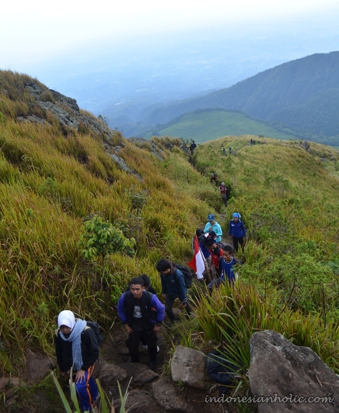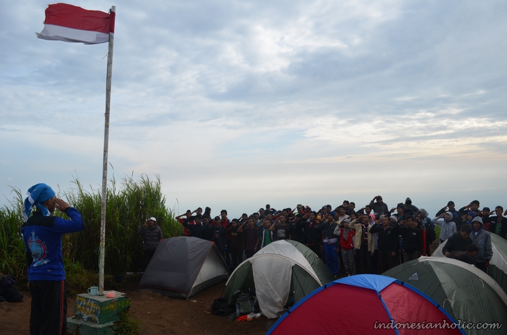 Inilah akhir dari perjalanan dengan menapaki jejak – jejak sejarah para pahlwan yang telah mendahului, dengan mengorbankan jiwa raganya demi merah putih. Setelah istirahat sejenak kami yang sudah tergabung dari beberapa kelompok pendaki dan akan melakukan upacara bendera hari pahlawan dengan dipimpin oleh seorang pemuda yang kami percayakan. Ada ratusan orang memberi hormat dan melantunkan Indonesia raya. saya terharu, bergetar dan merinding mendegar dentuman suara teman-teman, ini upacara terkhitmat yang pernah saya ikuti walaupun tanpa susunan konsep tapi kami sangat merasakan aura nasionalime upacara kali ini. Setelah Indonesia raya, dilanjutkan lagu padamu negeri, dan ditutup lagu syukur. Saya merasakan betul arti sebuah perjuangan walaupun masa kami tidak melawan penjajah tapi kami melawan bangsa kami sendiri. Semoga kami dapat mengambil pesan dari pendakian ini agar jiwa nasionalisme semakin membara dan tak akan lekang oleh waktu dan zaman.