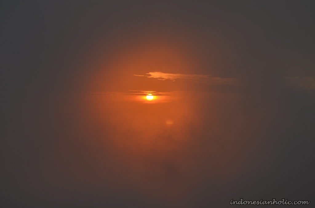 Jalur menajak dan licin menjadi tantangan sendiri bagi kami. Halang rintang kayu yang membuat kami harus merangkak untuk melewatinya. Kami tetap mencoba untuk tidak berjalan berjauhan karena kabut sudah mulai turun juga. Saya teringat perjalananku ke Gunung Bawakaraeng 3 bulan lalu yang tiba di puncak dalam kondisi badai dan berkabut, apakah kali ini saya akan merasakan hal yang sama. Saya tak menghiraukan itu, puncak adalah tujuan tapi langkah menuju puncak adalah segalanya, itulah pemikiran saya saat itu. Berjalanlah karena rahasia tuhan kita tidak pernah tahu. Kami tetap berjalan menembus kabut dan melawan waktu yang sedikit lagi matahari akan terbit. Saya sudah tak berharap banyak untuk tiba di puncak sebelum matahari terbit, tapi tuhan berkata lain kami tiba di pra puncak dengan penuh harapan. Awan hitam yang menutupi sang mentari kini mulai bergeser membiarkan cahaya matahari menyapa kami dengan kehangatannya. Sungguh terharu bisa menyaksikan matahari pagi ini, kami bersuka cita menyambutnya. Wajah lelah diantara kami terbayarkan juga.