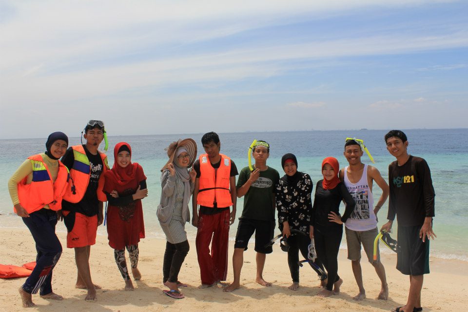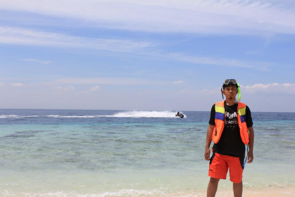 Pulau yang membuat penasaran akhirnya kami temui, hanya kata AMAZING yang pantas untuk pulau ini. laut biru kristal, pasir putih, damai, dan tanpa polusi. Tanpa berpikir panjang kami melompat dari kapal dan merasakan sentuhan awal pasir putihnya. Mengankat barang-barang menuju sebuah pohon besar yang menjadi saksi kedatangan kami.