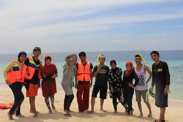 istirahat sejenak di bawah rindang, sambil ganti kostum. Akhirnya kami berlarian menuju pantai yang sudah siap menyambut kami. Karang-karang yang sudah siap memperlihatkan keindahannya, Ikan-ikan yang sudah siap memperlihatkan kemolekannya dan pasir yang sudah siap memanjakan kami. Snorkling sangat pantas di pulau ini, dimana kamu akan takjub sendiri setelah melihat keindahannya sampai lupa waktu.Puas bersnorkling kami melanjutkan mengabadikan keindahanya.