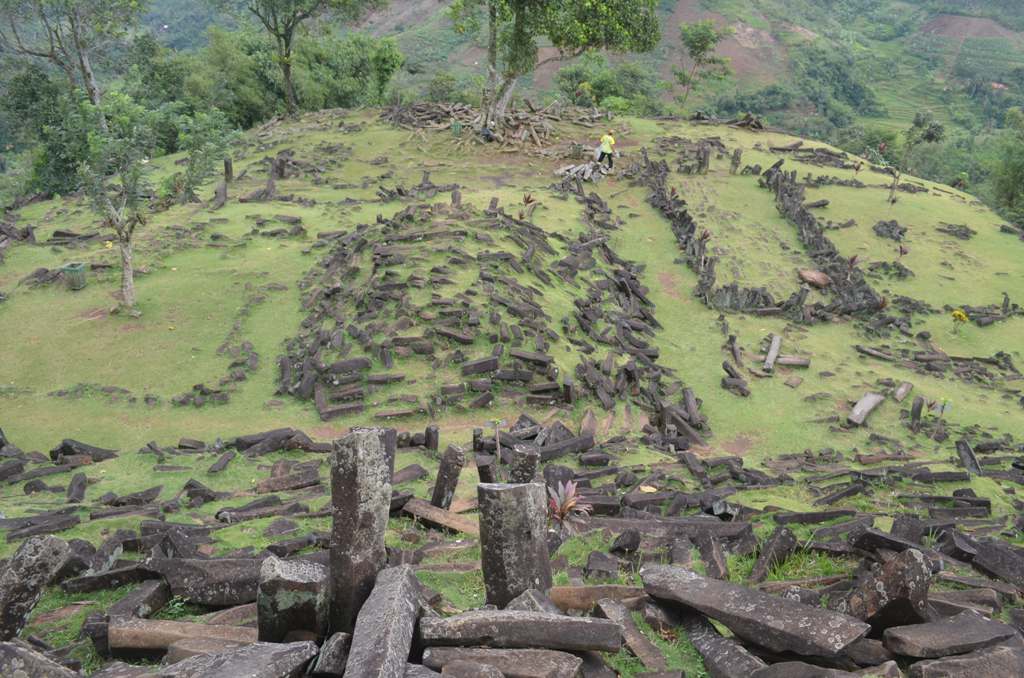 Lama perjalanan saya naik tangga sekitaran 30 menit akhirnya sampai juga di puncak. melihat kumpulan lonjong segiempat yang bertaburan dan ada juga yang tertancap di tanah. Tampak hanya beberapa pengunjung berhubung karena masih pagi dan bulan puasa jadi pengunjung kurang banyak. Menurut seorang bapak yang ditugaskan untuk menjaga situs mengatakan bahwa minggu kemarin sebelum puasa ada sekitar ribuan pengunjung yang datang.