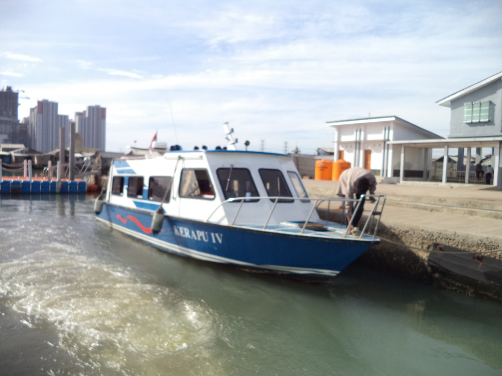 Minggu pagi walaupun masih gelap tepatnya pukul 05.30, saya dan 3 teman berangkat menuju pelabuhan Muara Angke. Sesampai di Muara Angke, dimana tempat yang masih tabu buat saya pribadi. ada prinsip yang selalu saya bawa jika perngi nge-trip “jangan malu bertanya”, setelah bertanya di beberapa orang akhirnya saya ketemu juga Pelabuhan kayu muara angke. Sesampai disana ternyata kapal menuju Pulau Pari itu tidak ada yang berangkat, karena hari minggu memang adalah hari kepulangan dari Pulau Pari. Alangkah celakanya jika liburan yang kami rencanakan harus batal. TIDAKKKKK. Seorang bapak sedikit tua yang sedang ngopi di warung saya datangi untuk bertanya tentang kepastian kapal dan siapa tahu dia punya saran yang lebih baik tentang permasalahan kami. Bapak itu pun menyarankan kami menuju ke Pelabuhan Kaliadem. Pelabuhan yang sudah dikelola oleh Dinas Perhubungan namun kapalnya hanya bisa muat 20 orang dan biasanya kalau kita terlambat maka kuota penumpang tidak ada lagi. Tidak menunggu lama, saya langsung bergegas menuju Kaliadem walaupun jaraknya tidak terlalu jauh. Munuju Kaliadem kami pun naik taxi karena takut kehabisan kuota. Tuhan memang selalu punya rencana lain, sesampai di kaliadem ternyata antrian sudah dimulai untuk pemebelian tiket. Setelah medekat dengan loket ternyata masih ada sisa kuota 7 orang. Tiket kapal penyebrangan di Kaliadem lebih mahal dibanding dengan Muara Angke. Harga sekali penyebrangan ke pulau Pari Rp.40.000,- dan asuransi Rp.2.000.-. Kapal yang digunakan memang lebih cepat dibanding dengan kapal kayu dan yang paling pasti kapal ini bersih. Kata ini memang tidak pernah salah “harga menentukan kualitas”.